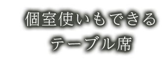 プライベート空間をお楽しみいただけるテーブル席。 仕切りを付けて半個室風にすることもできます。 13名様以上で貸切も可能です。